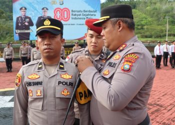 LINGGASATU, LINGGA – Kepala Kepolisian Resor Lingga AKBP Dr, P.M. NABABAN, S.H., S.I.K., M.H., Memimpin Apel pemasangan Beand Lengan Perwira...