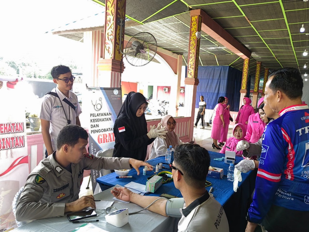 LINGGASATU, Bintan – Polres Bintan bekerja sama dengan Jasa Raharja menggelar kegiatan bakti kesehatan pemeriksaan kesehatan dan pengobatan gratis di Melayu Berdendang, Tanjung Uban, Bintan pada Sabtu, 21 Juni 2025. Kegiatan ini merupakan salah satu dari rangkaian peringatan Hari Bhayangkara ke-79.