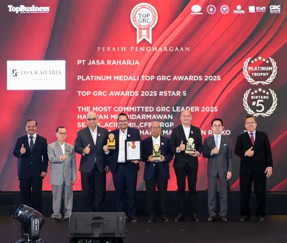 LINGGASATU, Jakarta – Jasa Raharja kembali meraih pengakuan di tingkat nasional dengan meraih empat penghargaan bergengsi dalam ajang TOP GRC Awards 2025 yang digelar di Dian Ballroom, Hotel Raffles Jakarta, pada hari ini (8/9/2025). Ajang yang diselenggarakan oleh Majalah Top Business bersama Asosiasi GRC Indonesia, Komite Nasional Kebijakan Governansi (KNKG), dan sejumlah lembaga profesional tata kelola ini, menjadi salah satu penghargaan paling bergengsi di Indonesia dalam bidang tata kelola, manajemen risiko, dan kepatuhan (Governance, Risk, & Compliance/GRC).