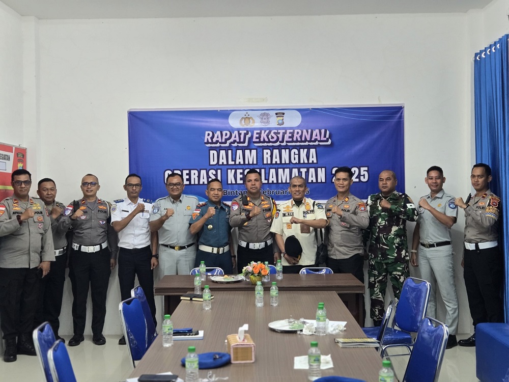 LINGGASATU, Bintan – Jasa Raharja Tanjungpinang turut serta dalam Rapat Kesiapan Operasi Keselamatan Tahun 2025 di Gedung Satlantas Polres Bintan pada Rabu, 6 Februari 2025. Rapat yang digagas oleh Polres Bintan tersebut dihadiri oleh Den POM TNI AL Lanal Bintan, Dinas Perhubungan Kab. Bintan, Satpol PP Kab. Bintan, serta Jasa Raharja.