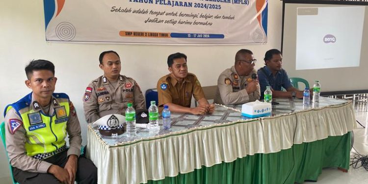 LINGGASATU,Daek – Kapolsek Daik Lingga IPTU Djawen Sariman menjadi narasumber dalam kegiatan Masa Pengenalan Lingkungan Sekolah (MPLS) calon siswa-siswi SMPN 2 Lingga Timur, Selasa (16/7/2024).