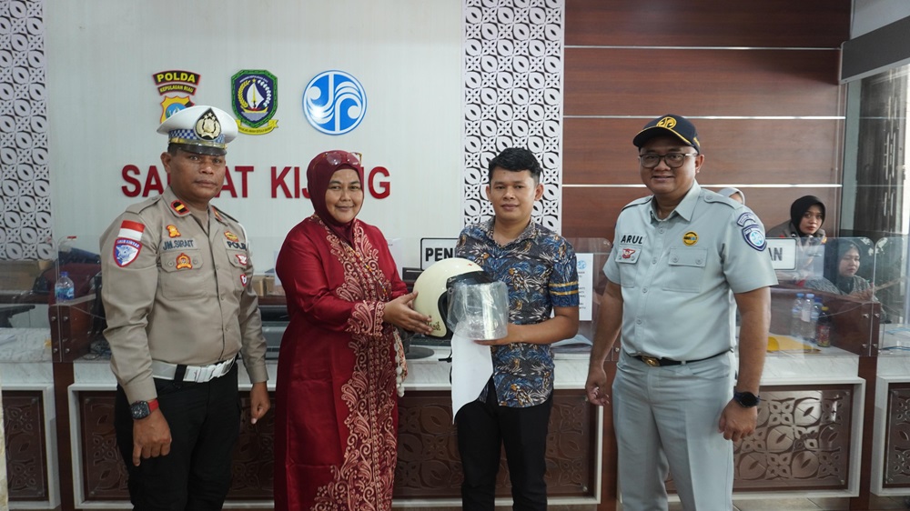 LINGGASATU, Bintan – Sebagai bentuk kepedulian bersama terhadap meningkatnya risiko kecelakaan di jalan dan sejalan dengan peringatan Hari Keselamatan Transportasi Tahun 2025 serta dalam rangka Hari Lalu Lintas Jalan, PT Jasa Raharja Cabang Tanjungpinang menggandeng Satlantas Polres Bintan dan UPT PPD Kijang gelar kegiatan pembagian helm di Samsat Kijang, pada Jumat (19/09/2025).