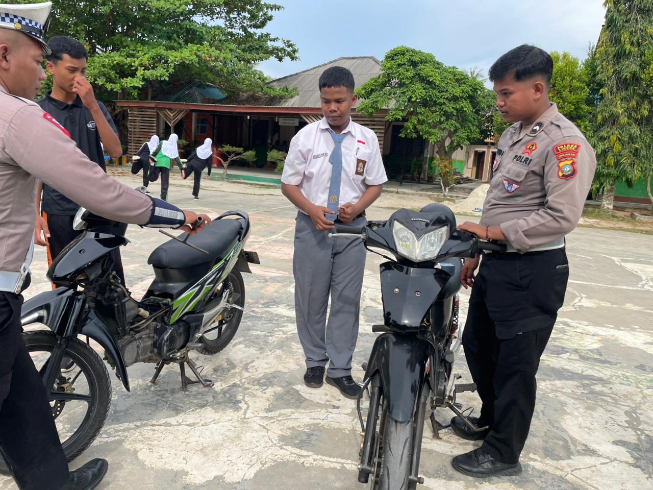 Dalam kegiatan tersebut, petugas melakukan pemeriksaan kendaraan milik pelajar yang terparkir di halaman sekolah. Dari hasil pemeriksaan, ditemukan beberapa unit sepeda motor yang menggunakan knalpot brong atau tidak sesuai standar pabrikan, yang kemudian diberikan teguran dan pembinaan kepada para pelajar pemilik kendaraan.
