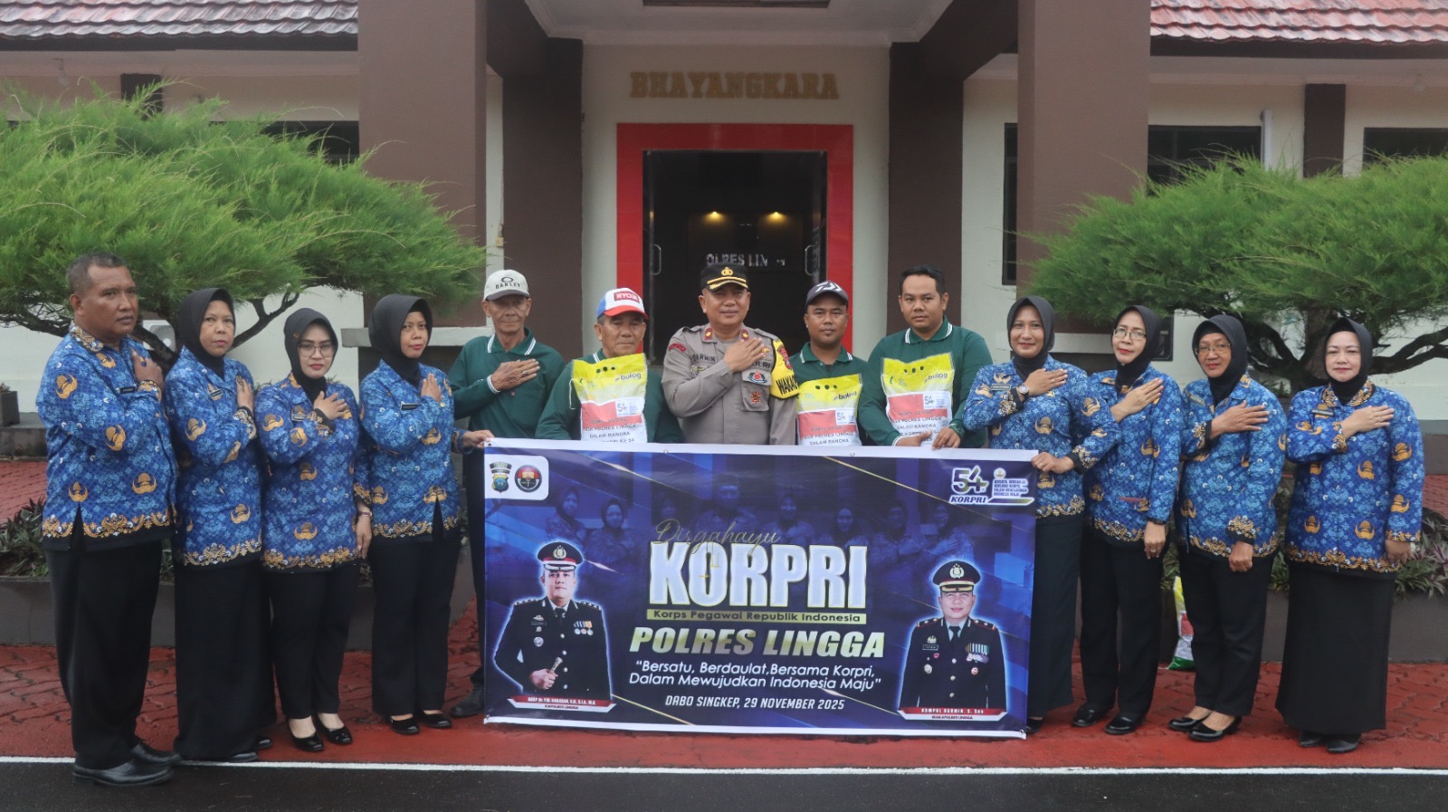 Lingga – Dalam rangka memperingati hari ulang tahun (HUT) Korpri ke-54 tahun 2025, Kepolisian Resor (Polres) Lingga menggelar kegiatan Baksos dan Anjangsana sebagai bentuk Penghormatan dan tali silaturahmi kepada para pensiunan Aparatur Sipil Negara (ASN) Polri yang pernah mengabdi di Polres Lingga dan ke panti jompo Tuah Bunda, Kegiatan ini dilaksanakan dengan penuh kehangatan dan kekeluargaan di Dabo Singkep kabupaten Lingga,” Jumat (21/11/2025)